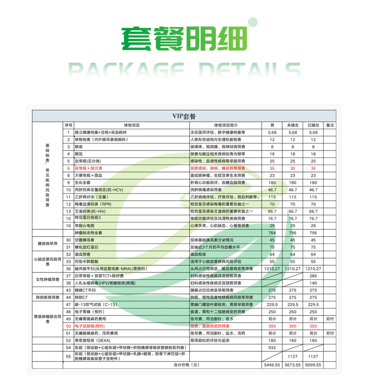 体检定制套餐
