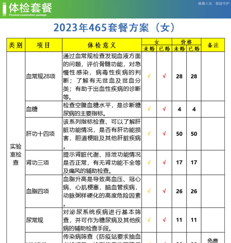 体检预约-2023年465套餐方案(女)-保山恒益健康