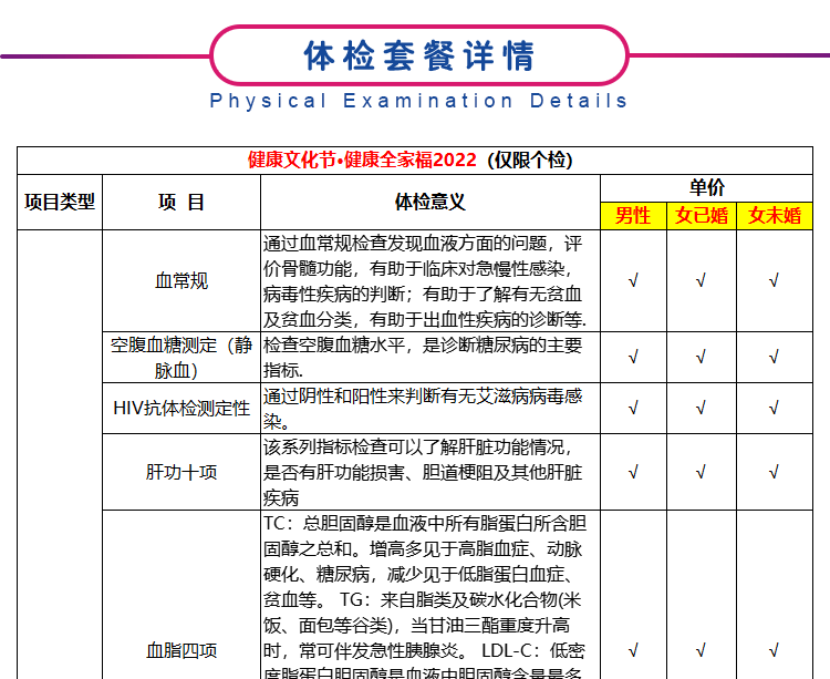 体检定制套餐