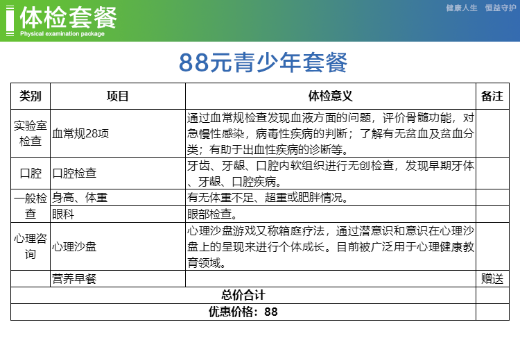 体检预约-88元青少年套餐-保山恒益健康